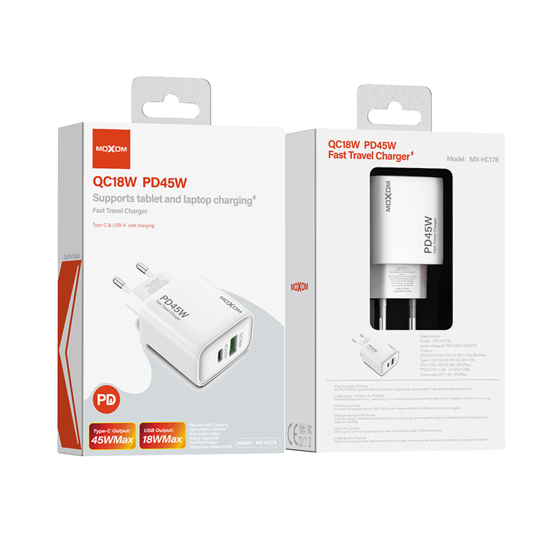 Type-C: DC5V=3A 9V=3A 12V=3A 15V=3.0A 20V=2.25A 45W Max PPS:3.3-11V=3A ,3.3-16V=2.8A